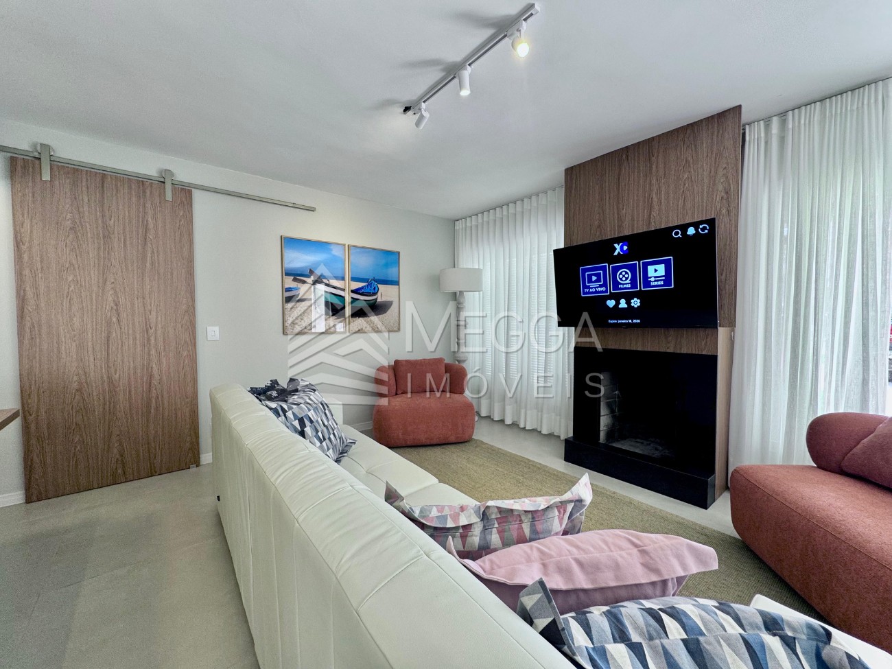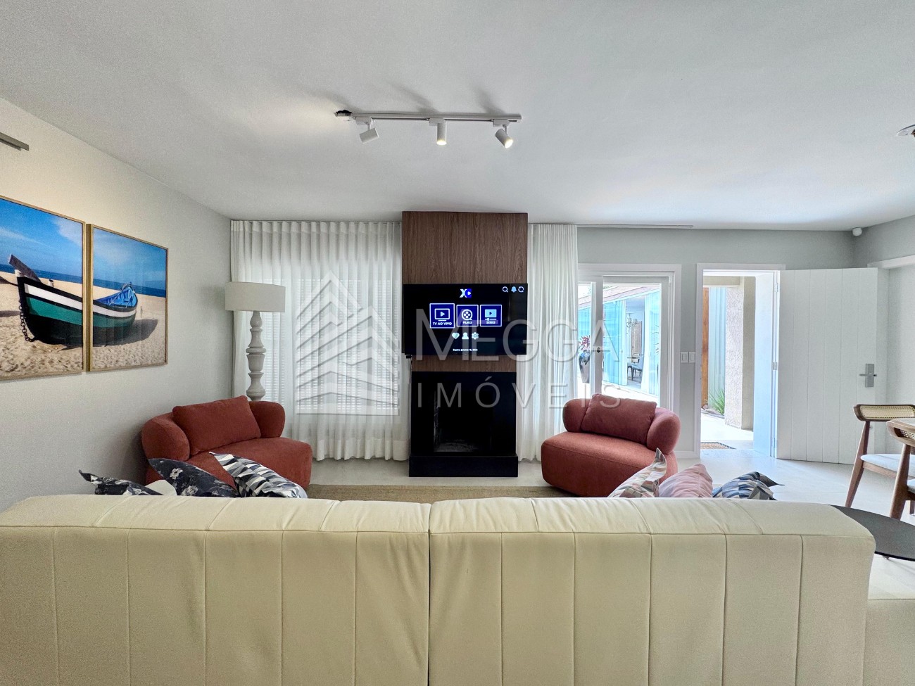 Megga Imóveis - Casa a poucos metros do Roubadinhas em Atlântida - 4 dormitórios, sendo 2 suítes - 3 banheiros com aquecedor - Sala de estar e jantar - Lareira - Espaço gourmet de 60m² - Piscina - Churrasqueira - Amplo pátio com quadra de vôlei - Paisagismo