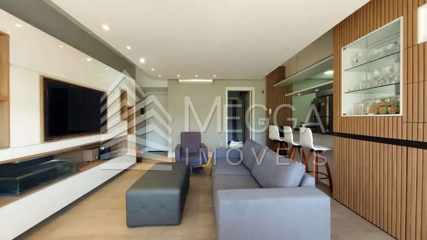 - Megga Imóveis - Excelente Giardino no condomínio Rossi - Composto por 130m² - 2 dormitórios, sendo 1 suíte - Cozinha americana - Living - Banheiro social - Área de serviço - Hidromassagem - Todos ambientes climatizados - Beira lago