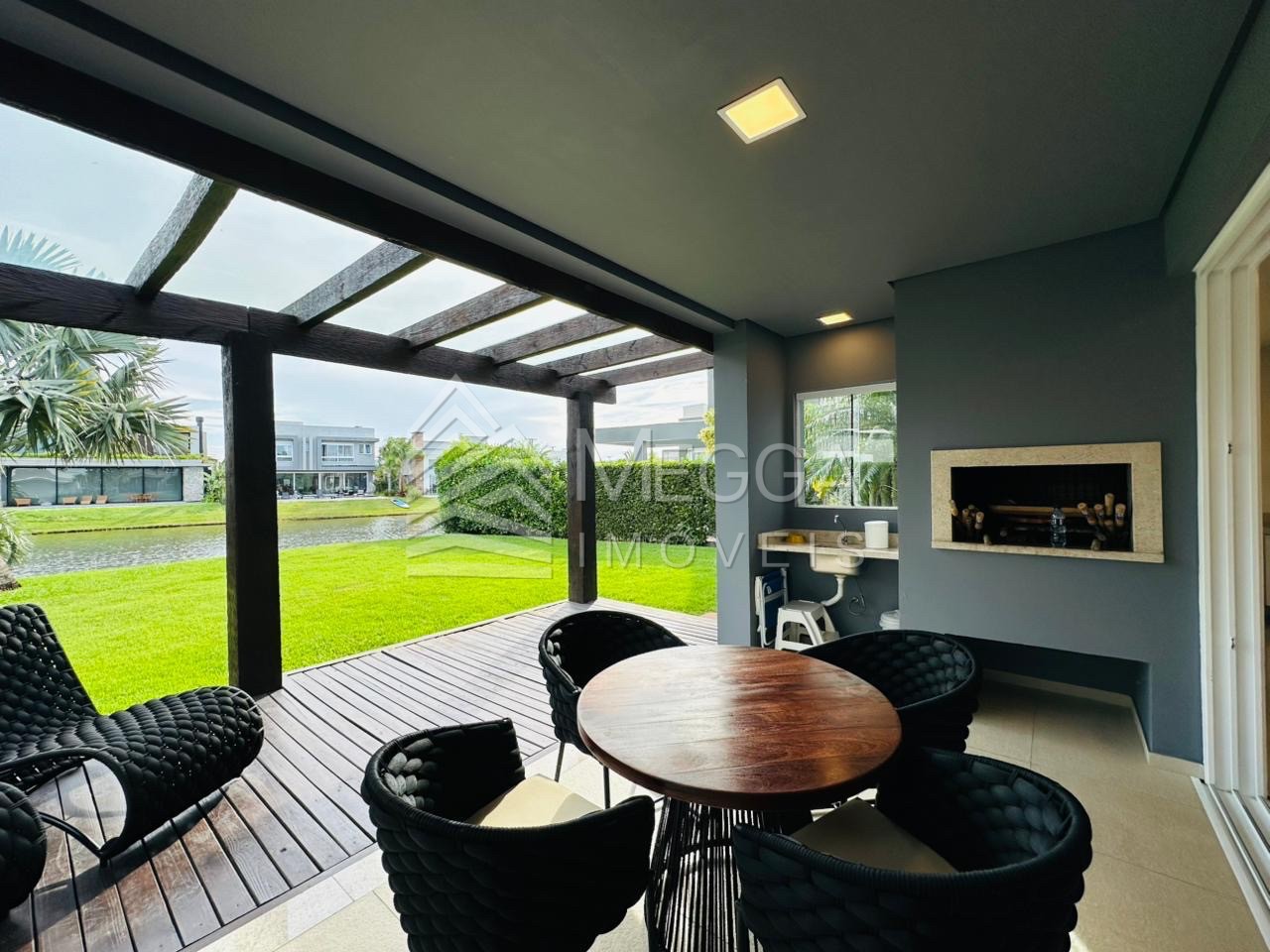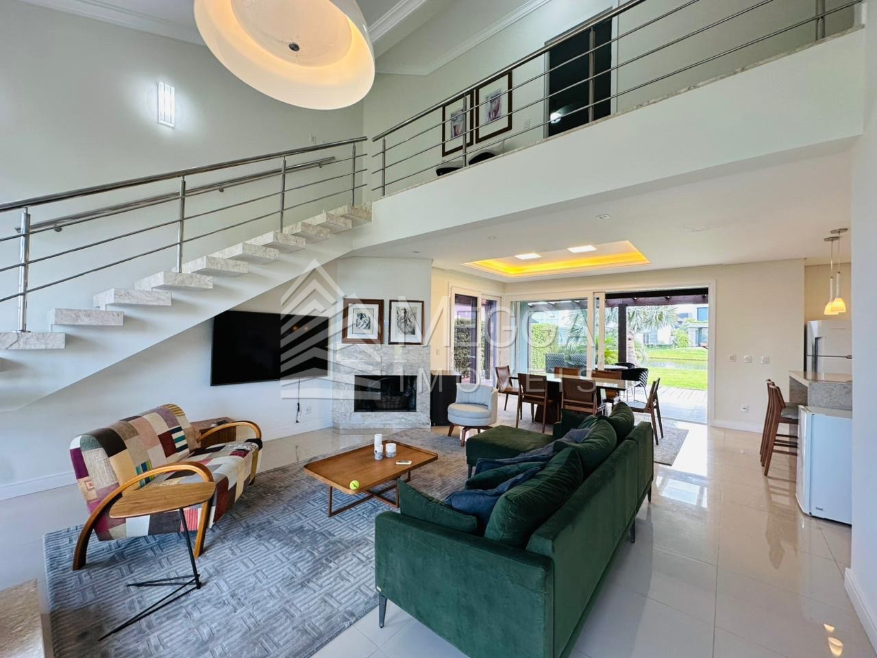 - Megga Imóveis - Casa no Condomínio Enseada com preço de terreno - 3 suítes, sendo 2 americanas - Beira lago - Mobiliada e decorada - Churrasqueira - Lareira - Beira lago - Pátio - Ampla varanda - Abrigo para carro