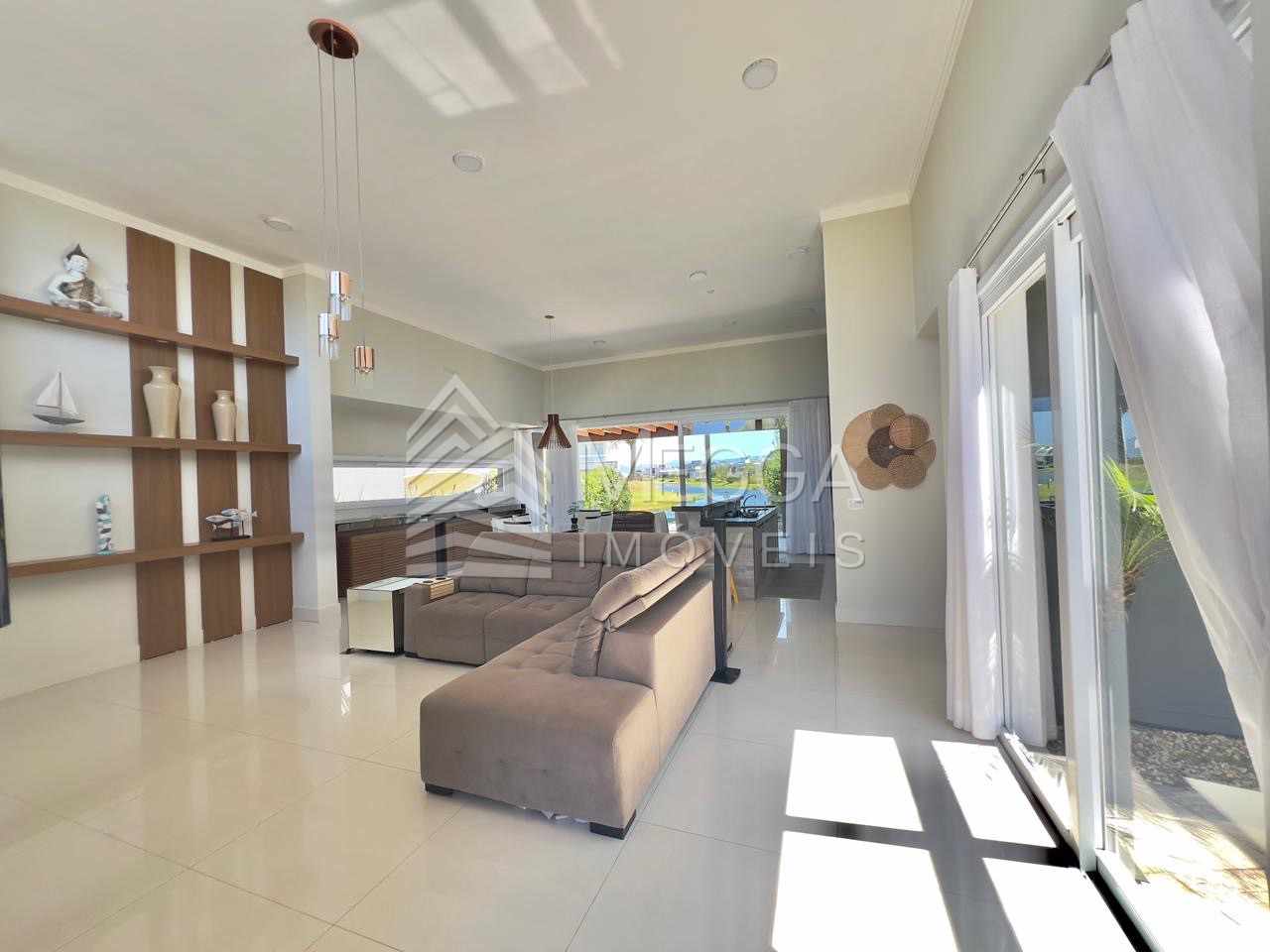 - Megga Imóveis - Casa no Condomínio Riviera - 3 dormitórios, sendo 1 suíte - Beira lago - Piscina de concreto - Mobiliada e decorada - Área de serviço - Churrasqueira - Lavabo - Vaga para carro - 160m²