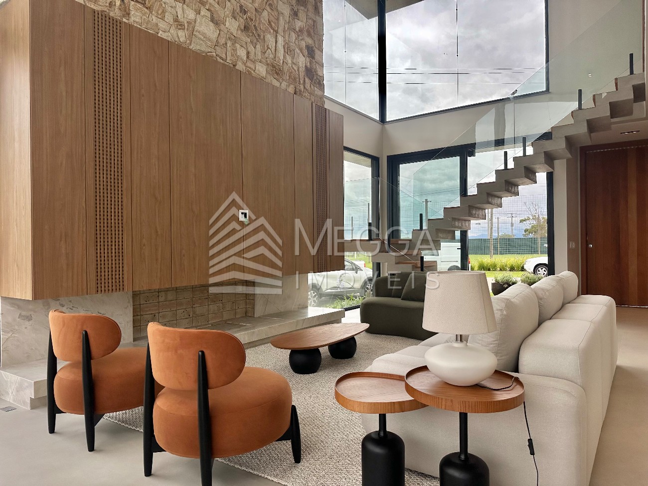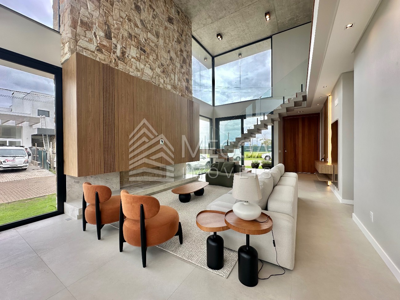 - Megga imóveis - Sobrado no condomínio Zen - 4 suítes sendo 1 térrea - Living 2 ambientes - Sala de estar e jantar - Cozinha - Lareira - Churrasqueira - Lavabo - Área de serviço - Piscina - Vaga para 2 carros