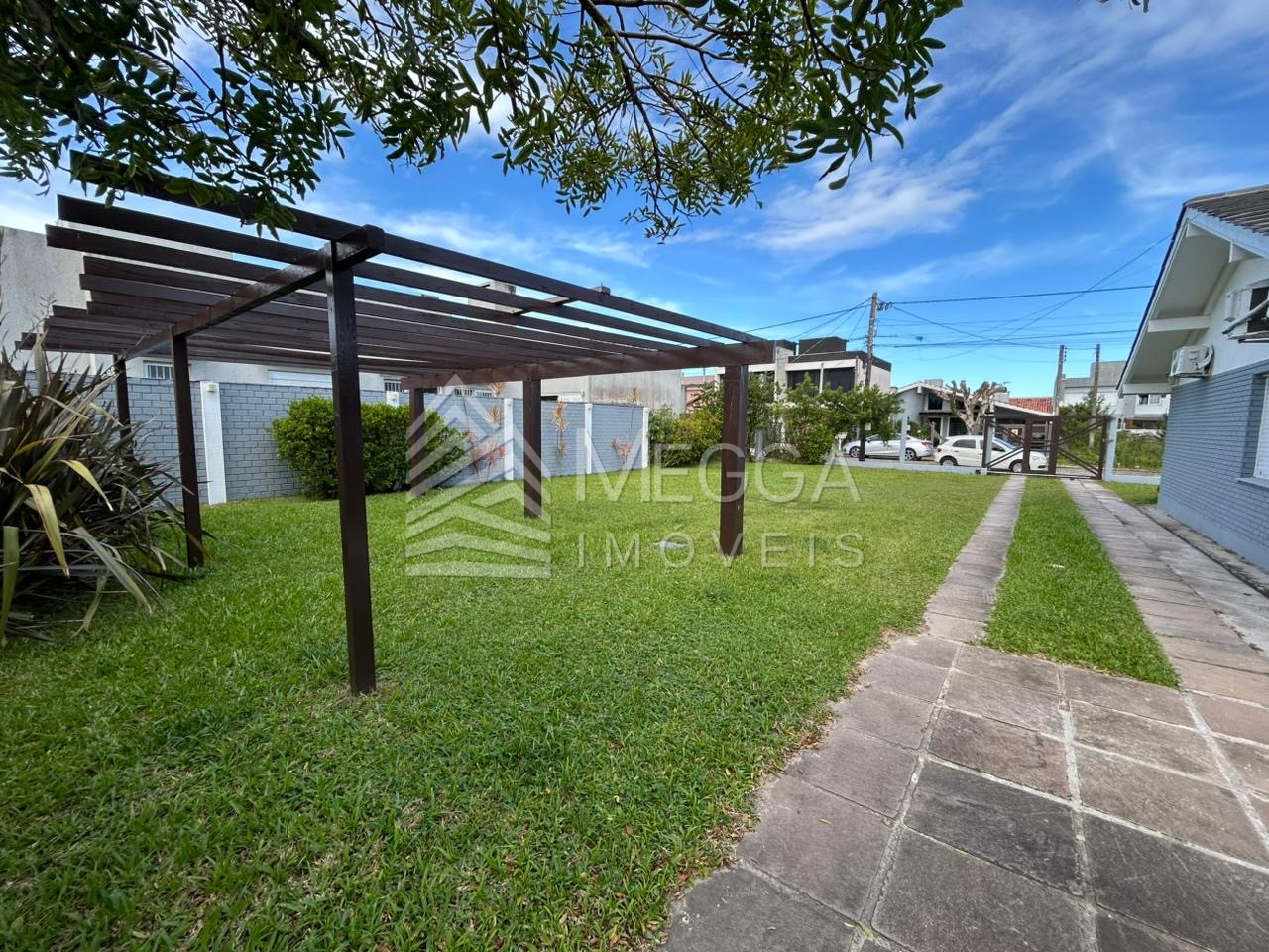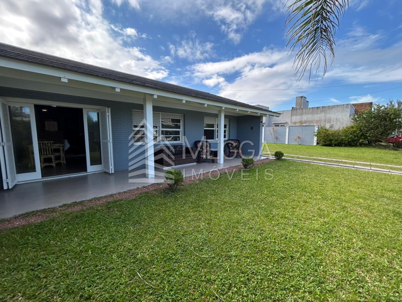 - Megga Imóveis - Casa no Centro de Xangri-lá - 3 dormitórios - Próxima ao mar - 2 terrenos unificados - 154, 52m² construídos - Sala de estar - Cozinha - Varanda - Piscina - Espaço gourmet - Garagem fechada - Amplo pátio - Frente leste - Mobiliado