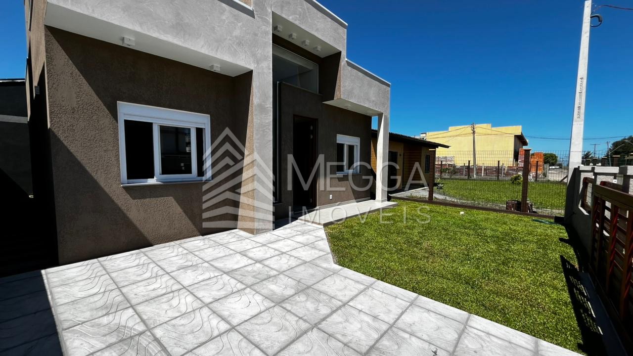 - Megga Imóveis - Casa Geminada em Xangri-lá - 3 dormitórios, sendo 1 suíte - Sala de estar e jantar - Lavanderia - Churrasqueira - Banho social - 82m² construídos