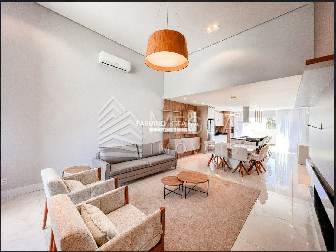 - MEGGA Imóveis - Casa no Condomínio Sunset - Mobiliada - 3 suítes (sendo 2 suítes americanas) - Living 2 ambientes - Cozinha americana - Lareira - Churrasqueira - Lavabo - Sala de estar e jantar - Ar Condicionado na sala e nos quartos - Área de serviço - Pátio privativo - Abrigo para 2 carros
