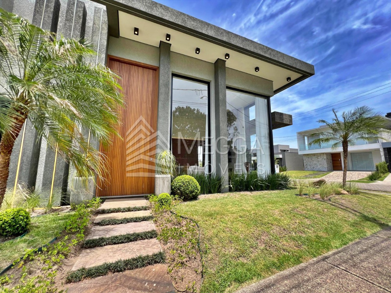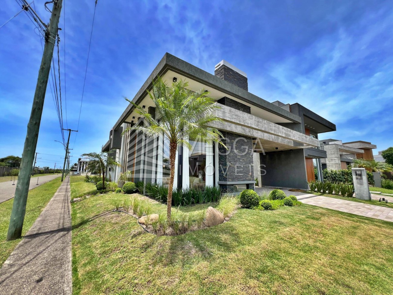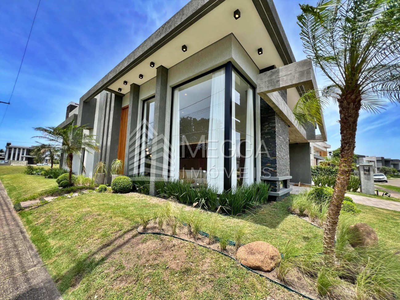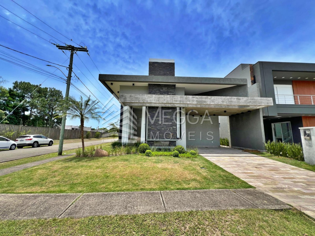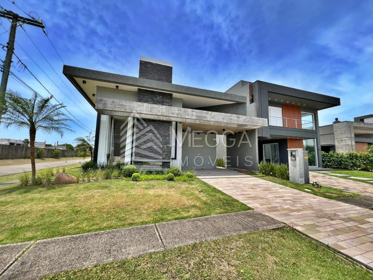 - Megga Imóveis - Sobrado no condomínio Capão Ilhas Resort - 4 suítes - Lareira - Churrasqueira - Piscina - Beira lago - Terreno de esquina, próximo ao club - Frente oeste - Vaga coberta para 1 carro - Decorada e mobiliada