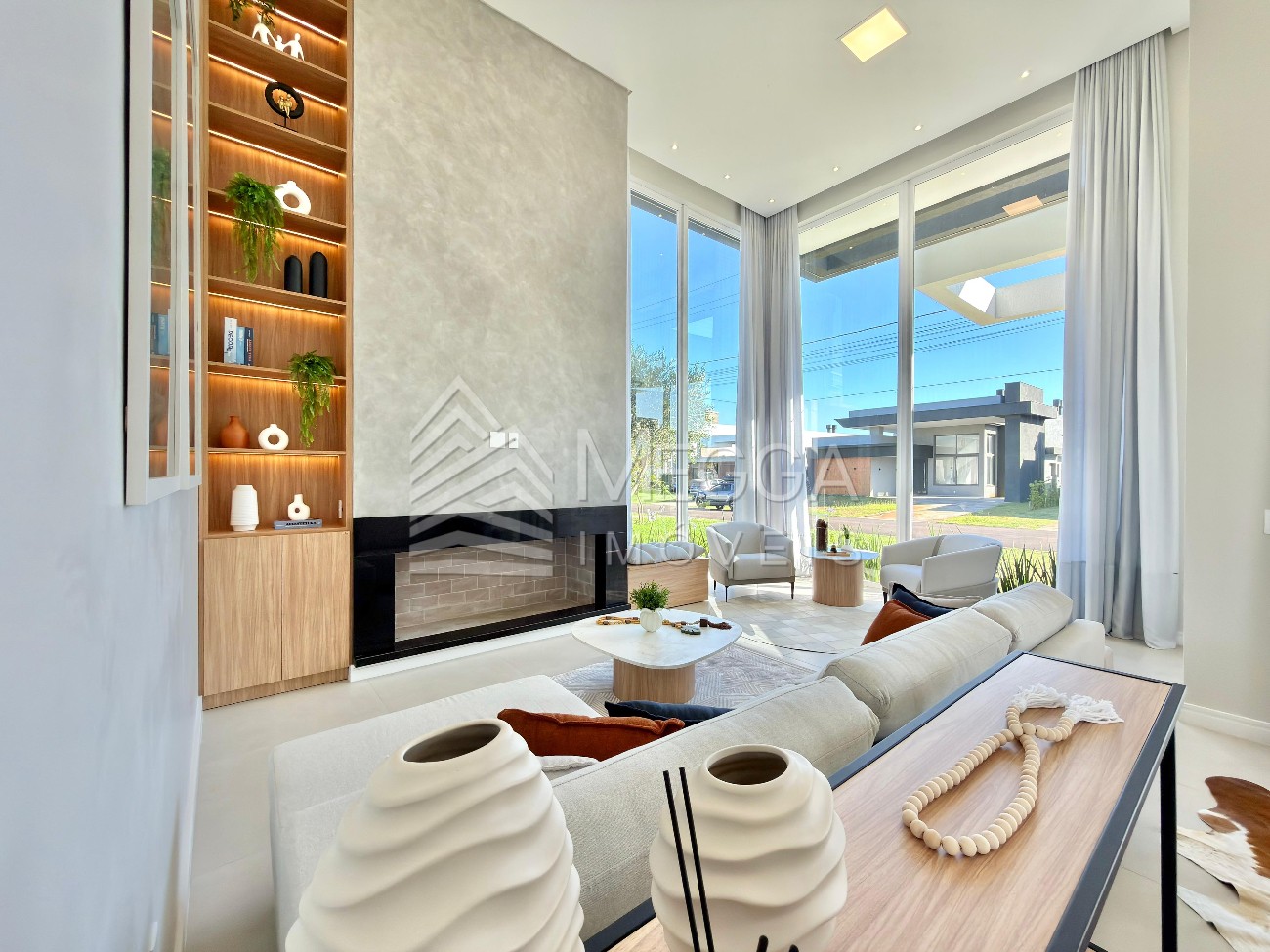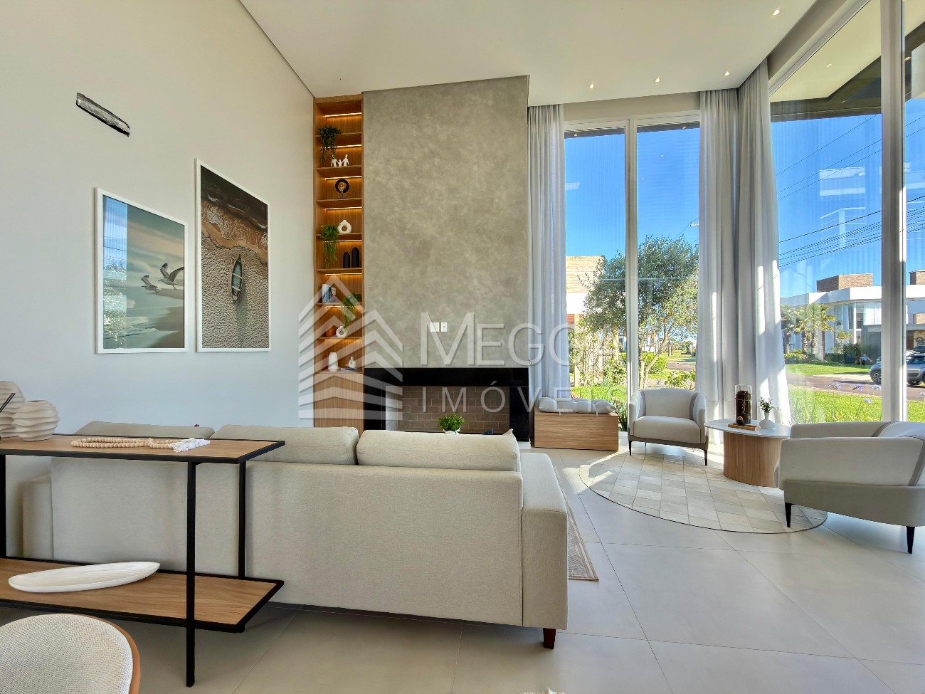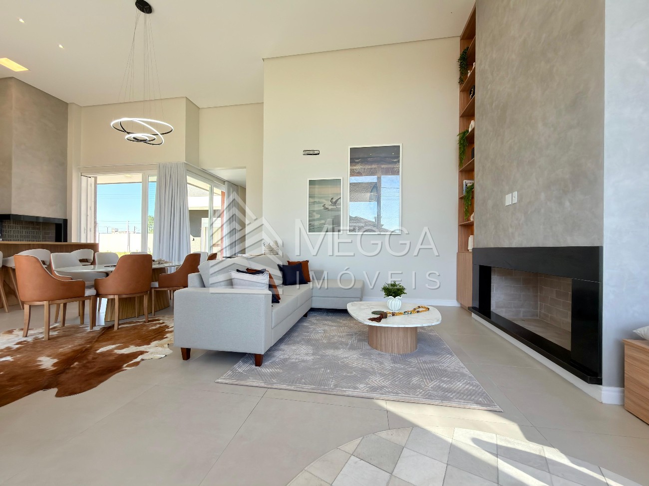 Megga Imóveis - Casa térrea no condomínio Costa Serena, Beira Mar - 4 suítes - Lavabo - Churrasqueira - Mobiliado e decorado - Living integrado - Lareira - Esquadrias em PVC - Piscina
