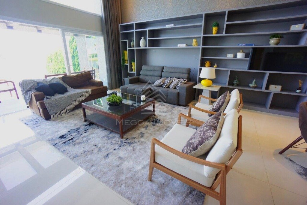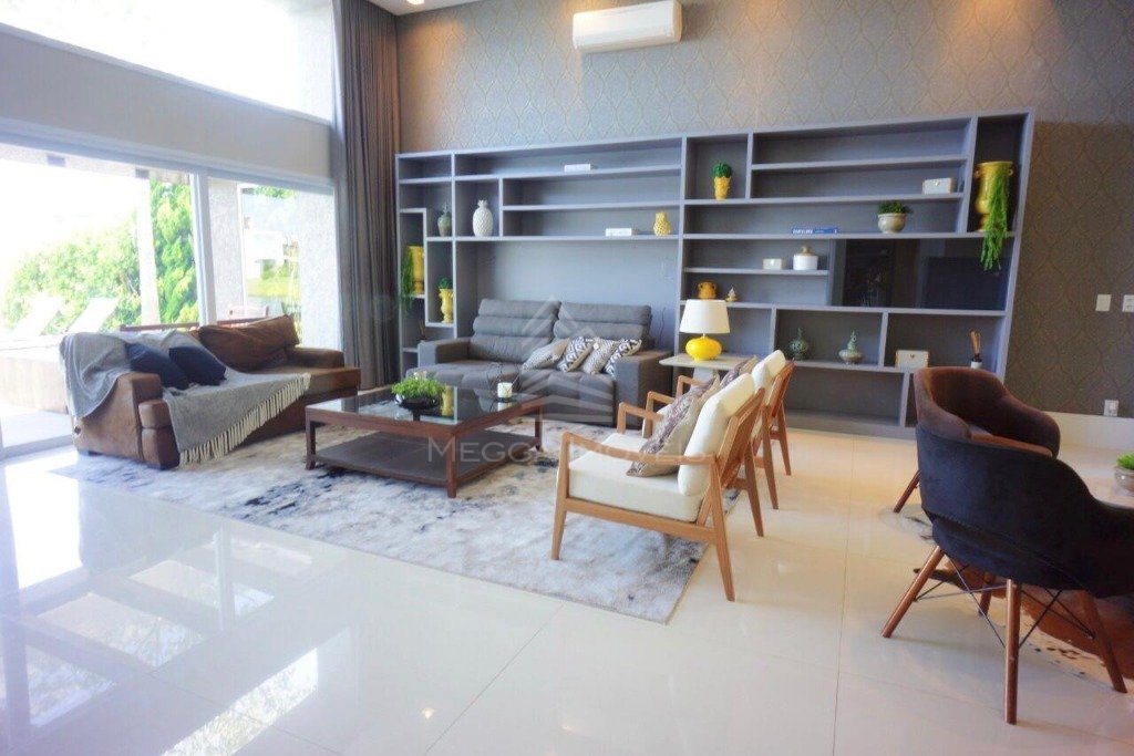 - Megga Imóveis - Sobrado no Condomínio Enseada - 4 suítes - Living 3 ambientes - Lavabo - Cozinha estilo americano - Churrasqueira - Piscina e spa em alvenaria - Abrigo coberto para 2 carros - Finamente mobiliada e decorada