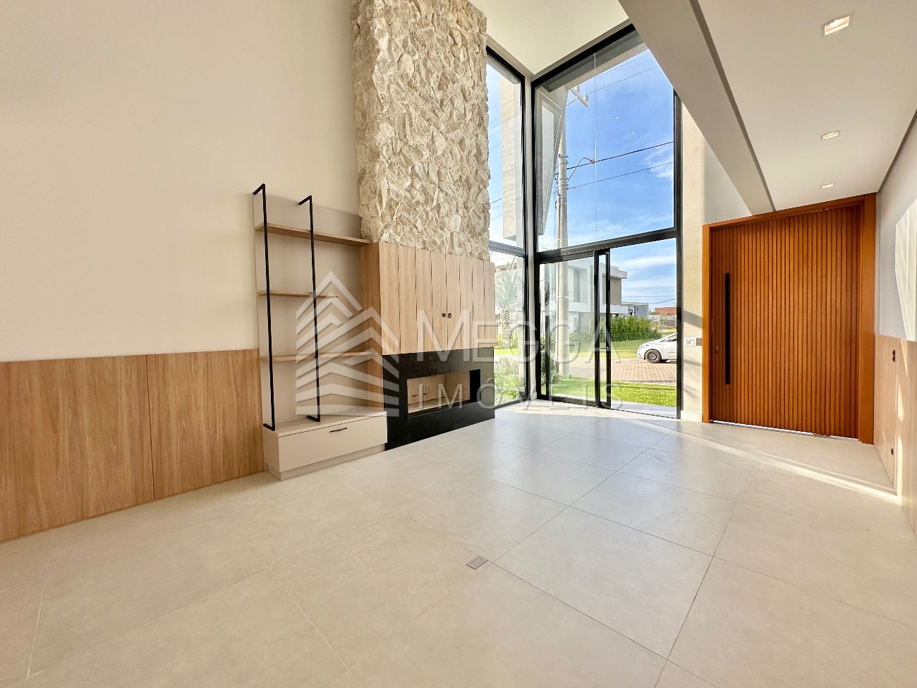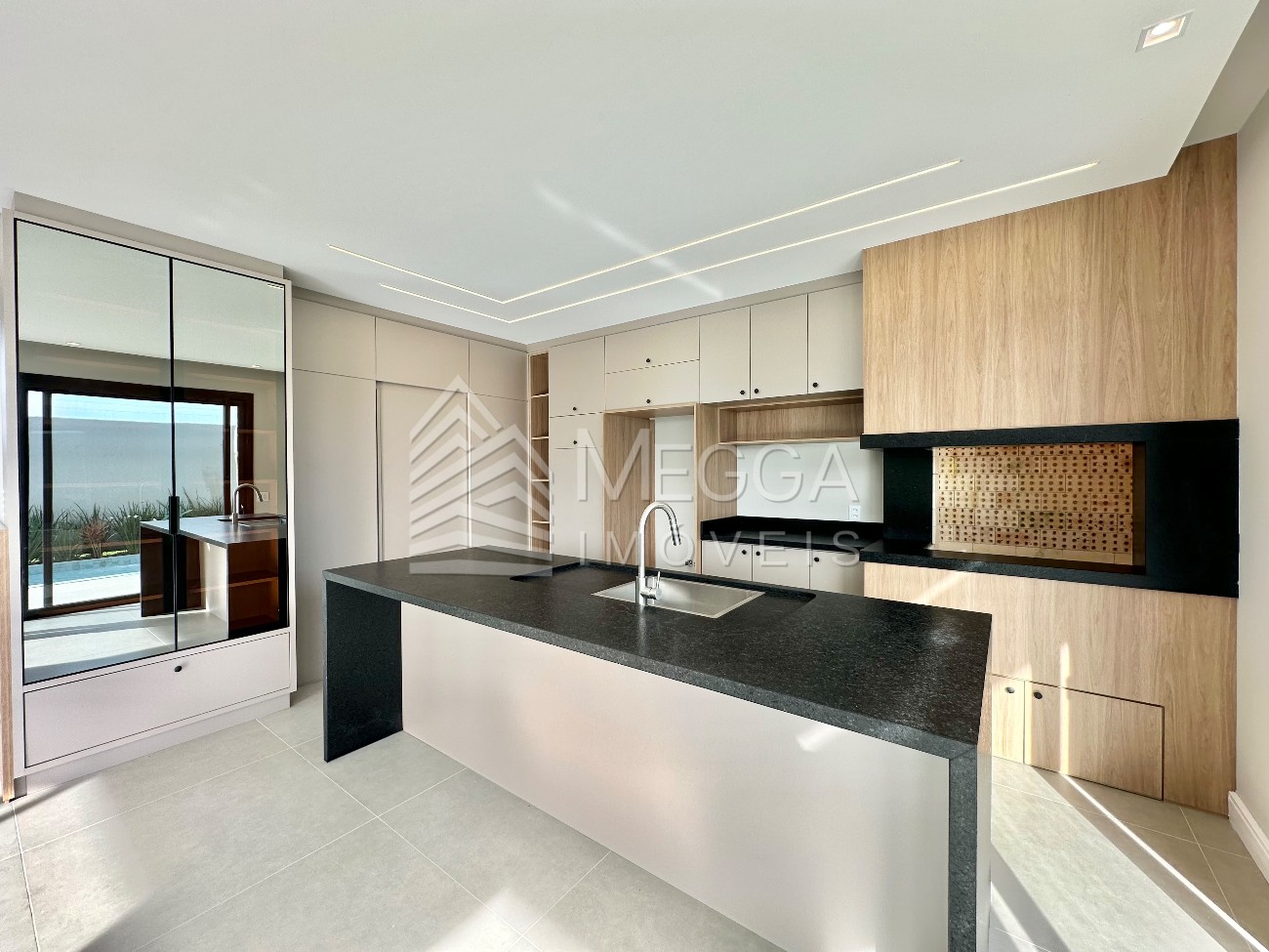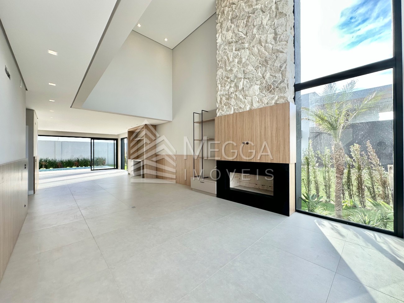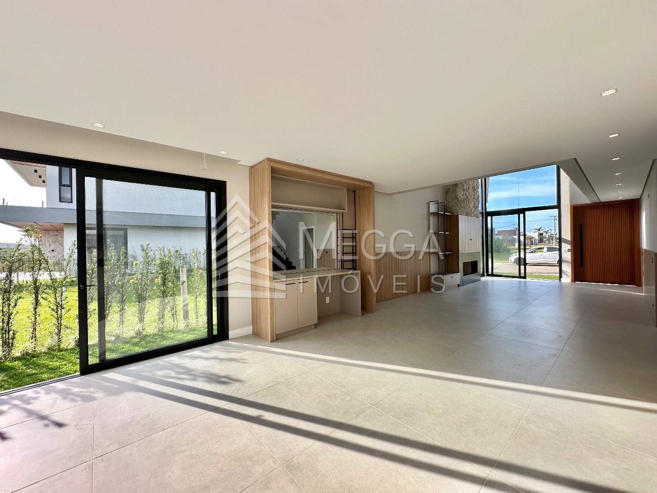 - Megga imóveis - Sobrado no condomínio Amare - 4 suítes - Living integrado - Sala de estar e jantar - Lareira - Churrasqueira - Lavabo - Área de serviço - Piscina de concreto - Vaga para 2 carros
