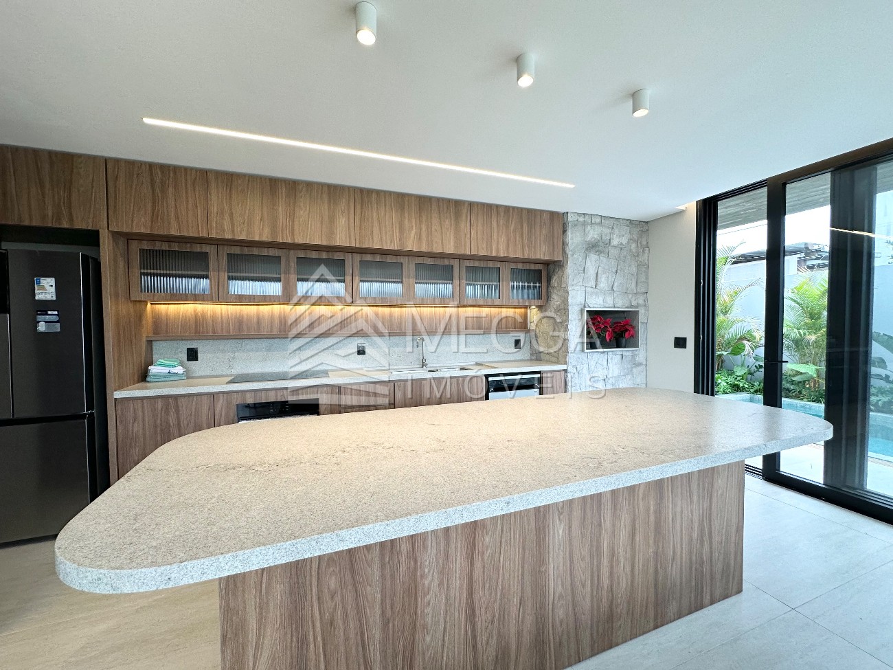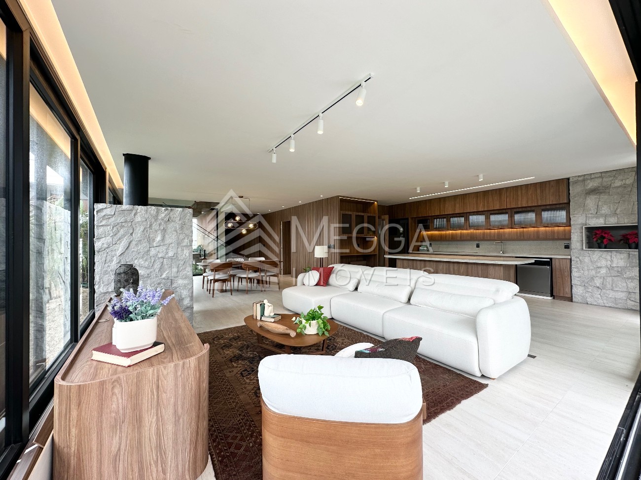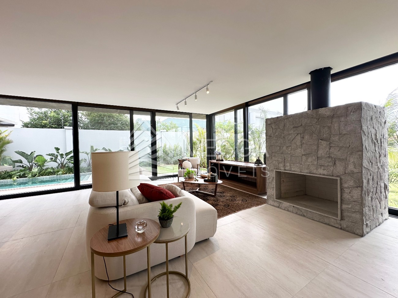 - Megga Imóveis - Casa no Condomínio Amare - 4 suítes (todas no andar superior) - Espera para elevador ou adega - Área de serviço - Churrasqueira - Piscina - Lavabo - Mobiliada e decorada - Vaga para 2 carros