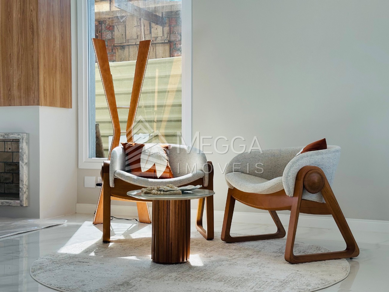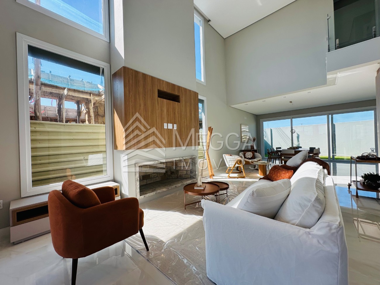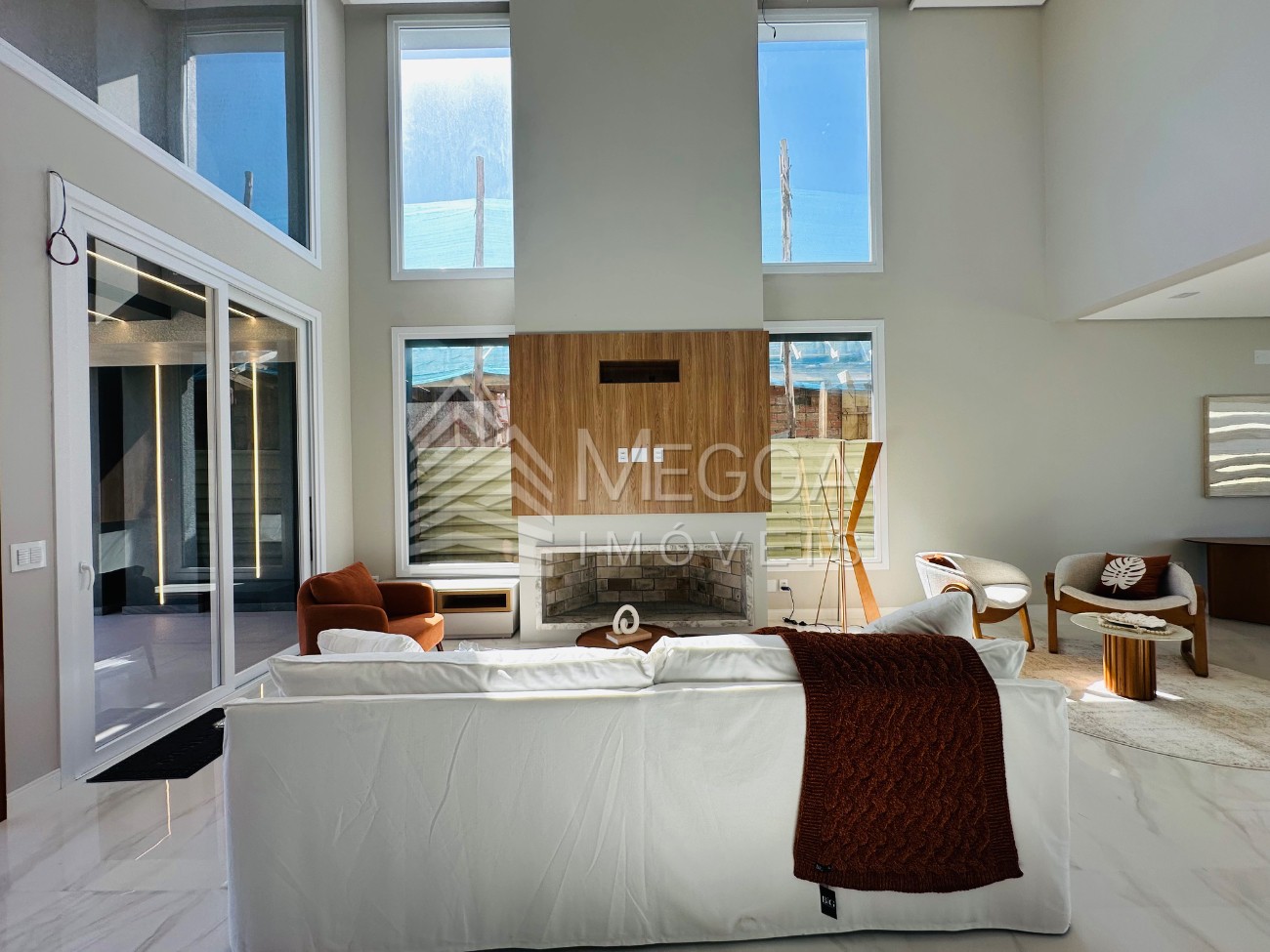 - Megga Imóveis - Sobrado no condomínio Amare - 5 dormitórios, sendo 4 suítes - Living integrado - Sala de estar e jantar - Lareira - Churrasqueira - Lavabo - Área de serviço - Vaga para 2 carros - 250m² construídos