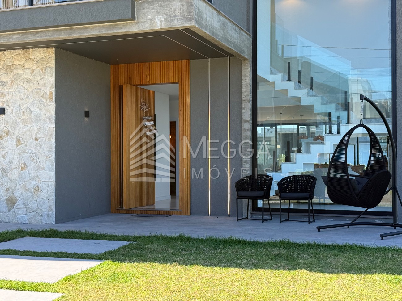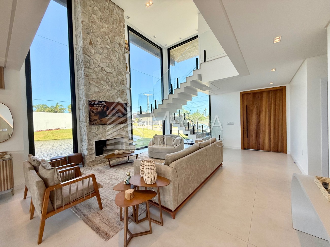 - Megga Imóveis - Sobrado no Condomínio Sunset - 6 suítes, sendo 1 térrea - Beira lago - Próximo ao clube - Mobiliada e decorada - Churrasqueira - Área de serviço - Lavanderia - Lareira - Living integrado - Frente sul - 324, 80m²