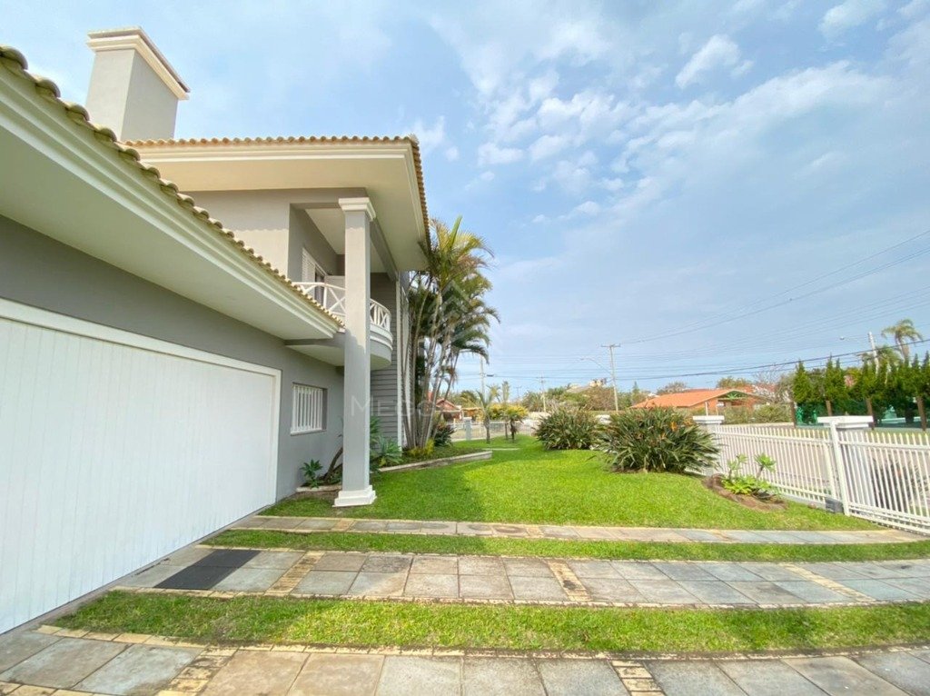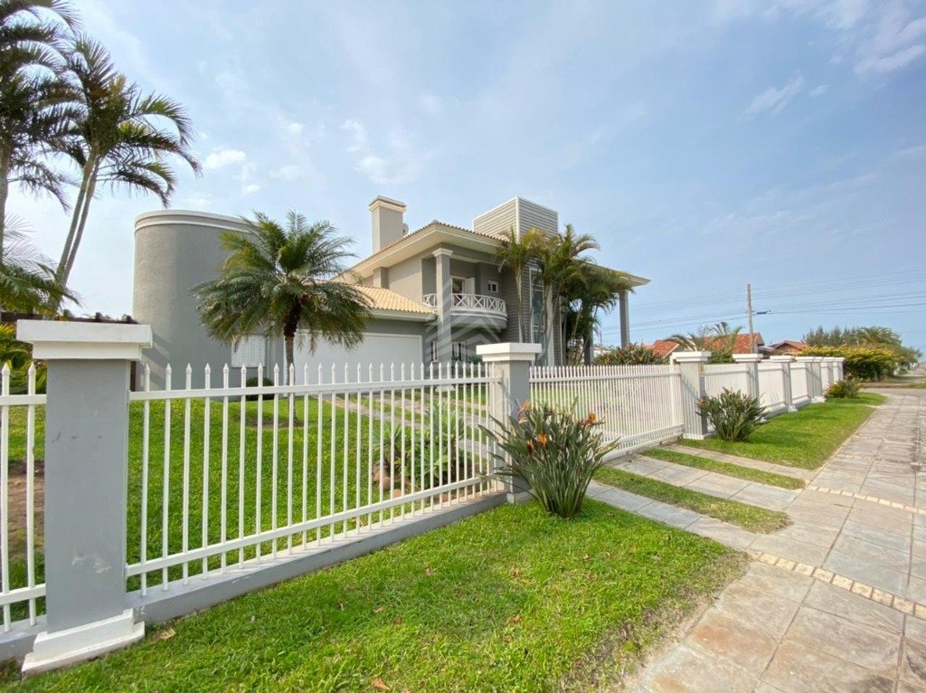 Megga Imóveis - Belíssimo sobrado de esquina, no centro de Atlântida, mobiliada, 4 suítes, living 3 ambientes, lareira, lavabo, cozinha com espaço gourmet, churrasqueira, garagem para 2 carros, área de serviço, dependência completa, piscina, pergolado com deck, jardim, cercada, alarme monitorado, frente leste/sul, uma belíssima e autêntica casa de praia com todos os atrativos para você aproveitar com a sua família e amigos.