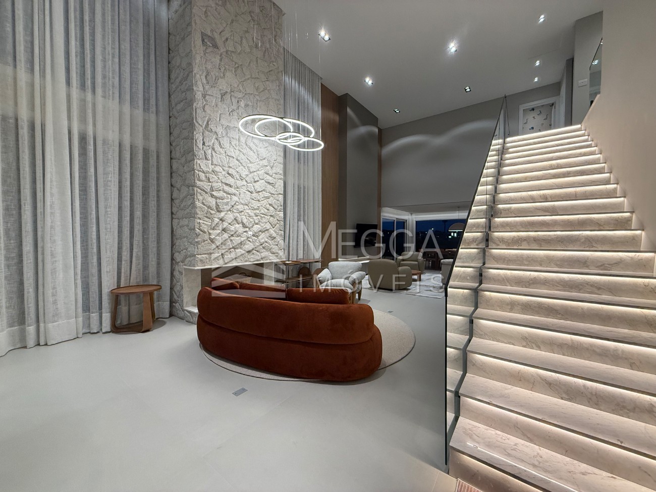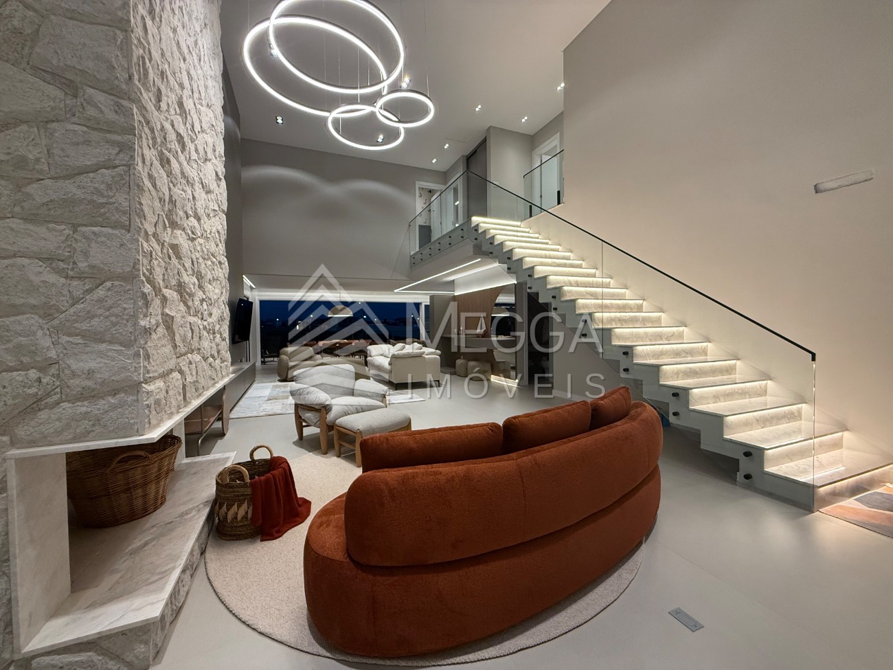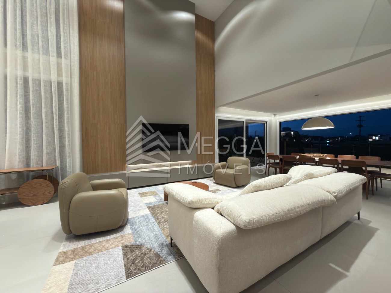 - Megga Imóveis - Sobrado beira lago no Condomínio Amare - 5 dormitórios, sendo 4 suítes - Lavabo - Churrasqueira - Área de serviço - Amplo Living - Piscina - Beira lago - Vaga para 2 veículos - 337m²